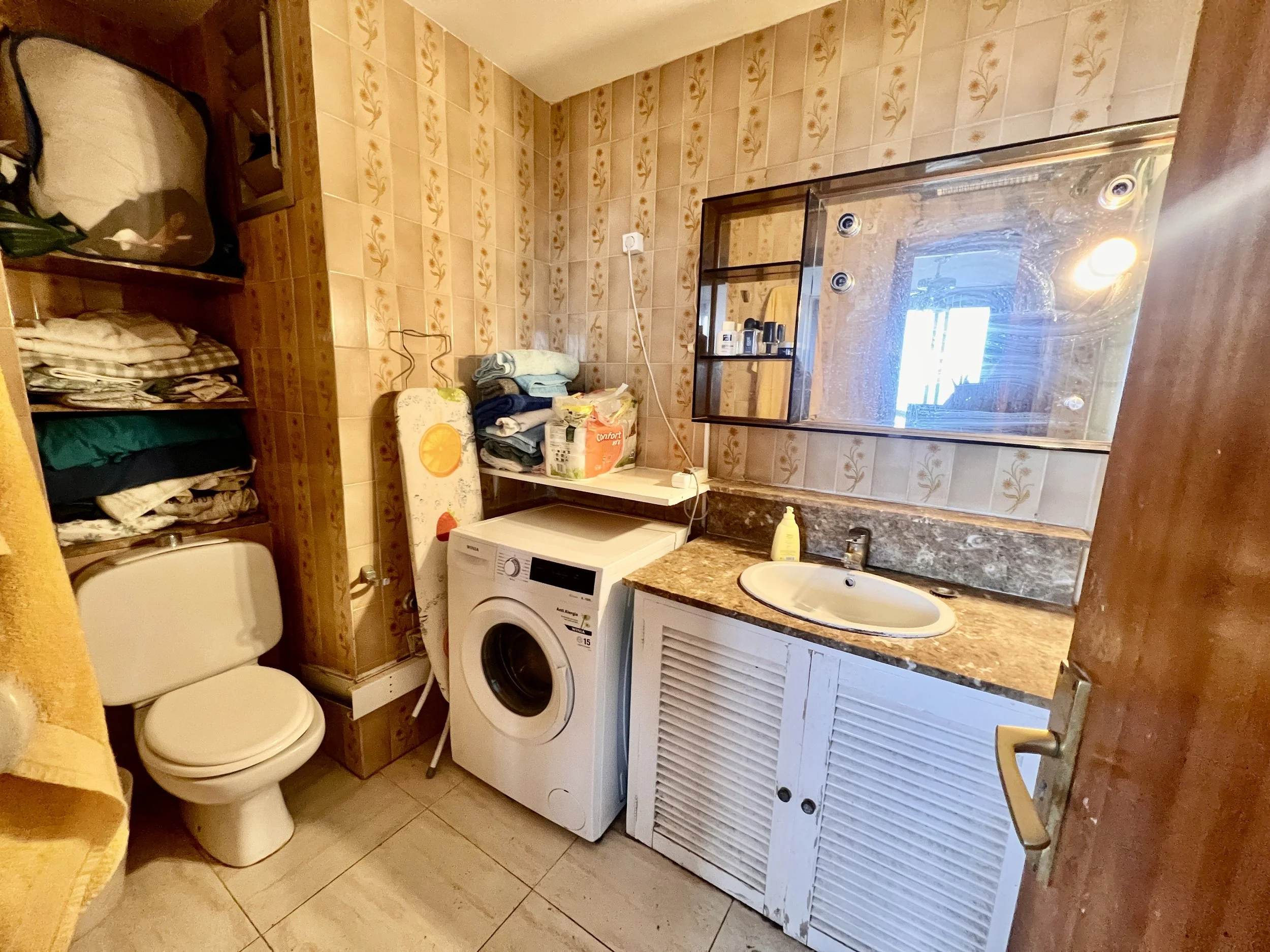 In the heart of this residential area, on the ninth floor of a south-facing building with panoramic views of the sea and the mountains, there is a 90 m² apartment full of potential, ready to shine again after a renovation project. With its layout and natural light, this property can easily be transformed into an elegant holiday home or a comfortable year-round residence.