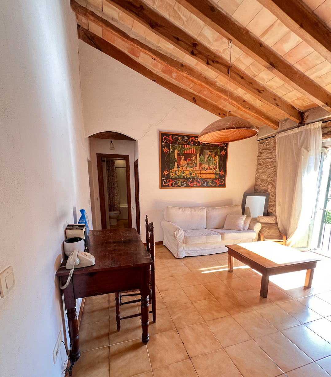 Discover the charm of an old 19th-century Mallorcan house, with its thick stone walls and original wooden doors. The spacious rooms, typical of the period, retain the original stone washbasin from the old kitchen and access to what was the stable. The floors are partially original, made of period terracotta.